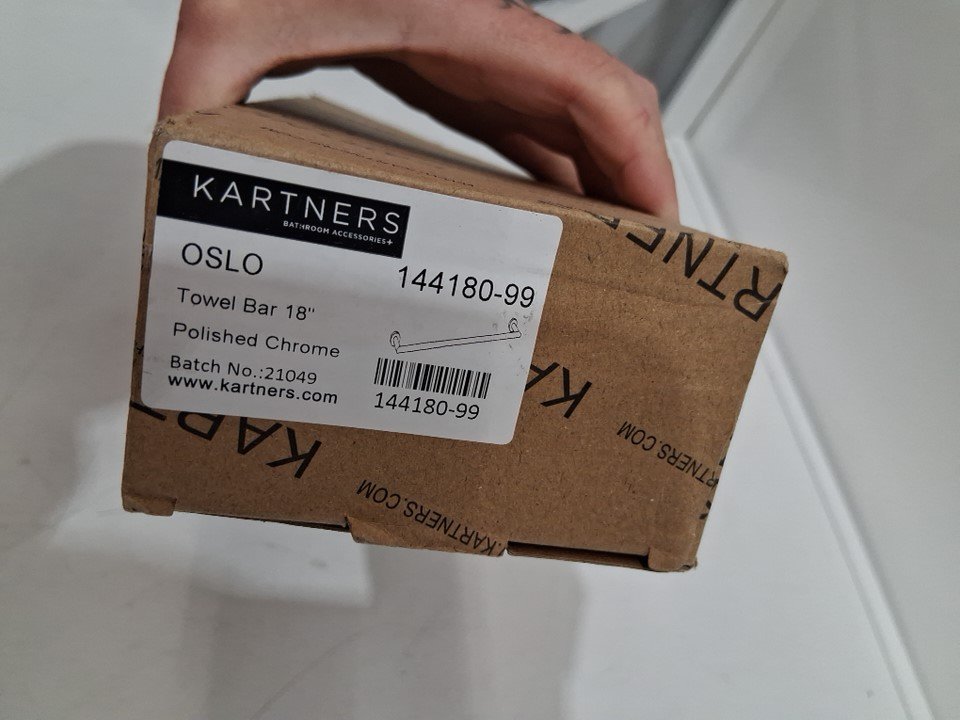 KARTNERS BATHROOM TOWEL BAR, 18" BAR - CHROME (MODEL: 144180-99)