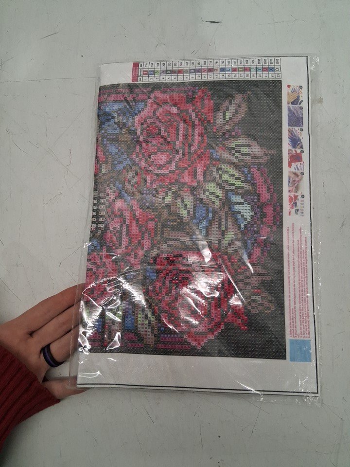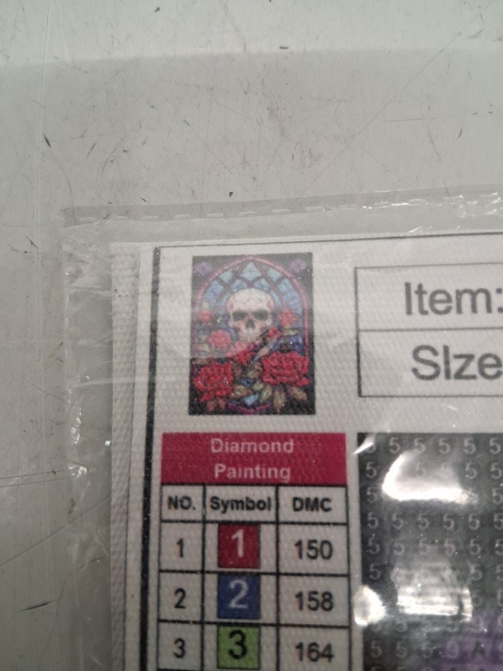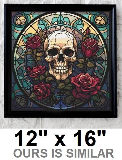 diamondairt kit for adults - rose skull glass window - 12" x 16" - multicolored