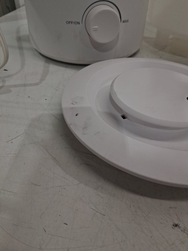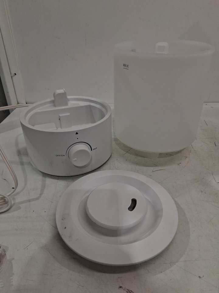 Tested for basic power. Please note the humidifier shows signs of previous use with a smell from previous liquid and some yellow smudging/scuff marks around the plastic, see photos.