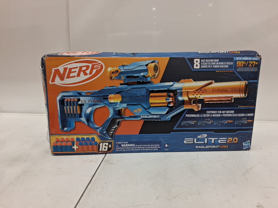 Nerf elite 2.0 eaglepoint rd-8 dart blaster & 8-dart drum with nerf scope - ages 8+ - orange/blue (model: ‎F0423)