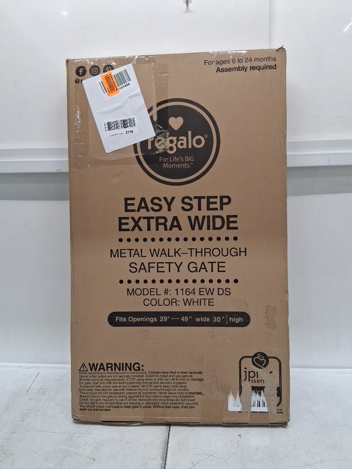 REGALO EASY STEP EXTRA WIDE METAL SAFETY GATE - 30" x 29" - 49" - WHITE (MODEL: 1164EwDS)