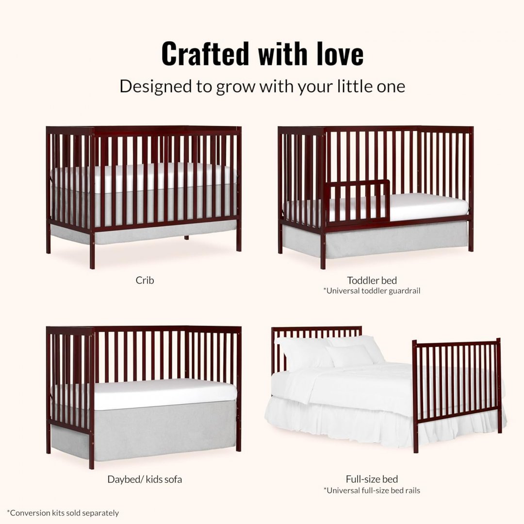 Dream On Me Synergy 5-in-1 Convertible Crib - 53" x 29" x 39" - cherry - (MODEL: ‎657-c)