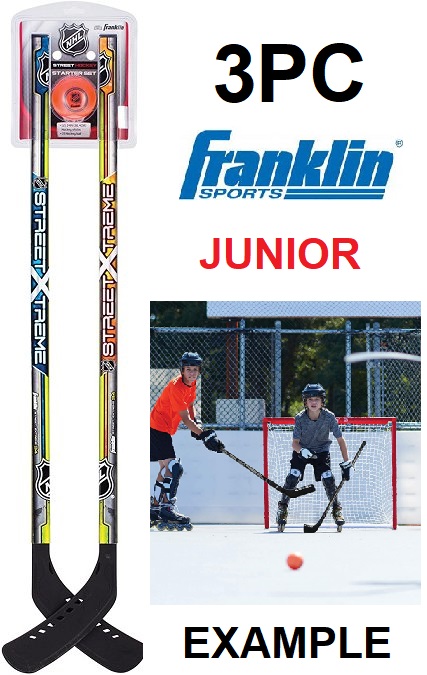 3PC FRANKLIN SPORTS YOUTH STREET HOCKEY SET / KIT, INCLUDES TWO 34" YOUTH STICKS & BALL (MODEL: 14198X)
