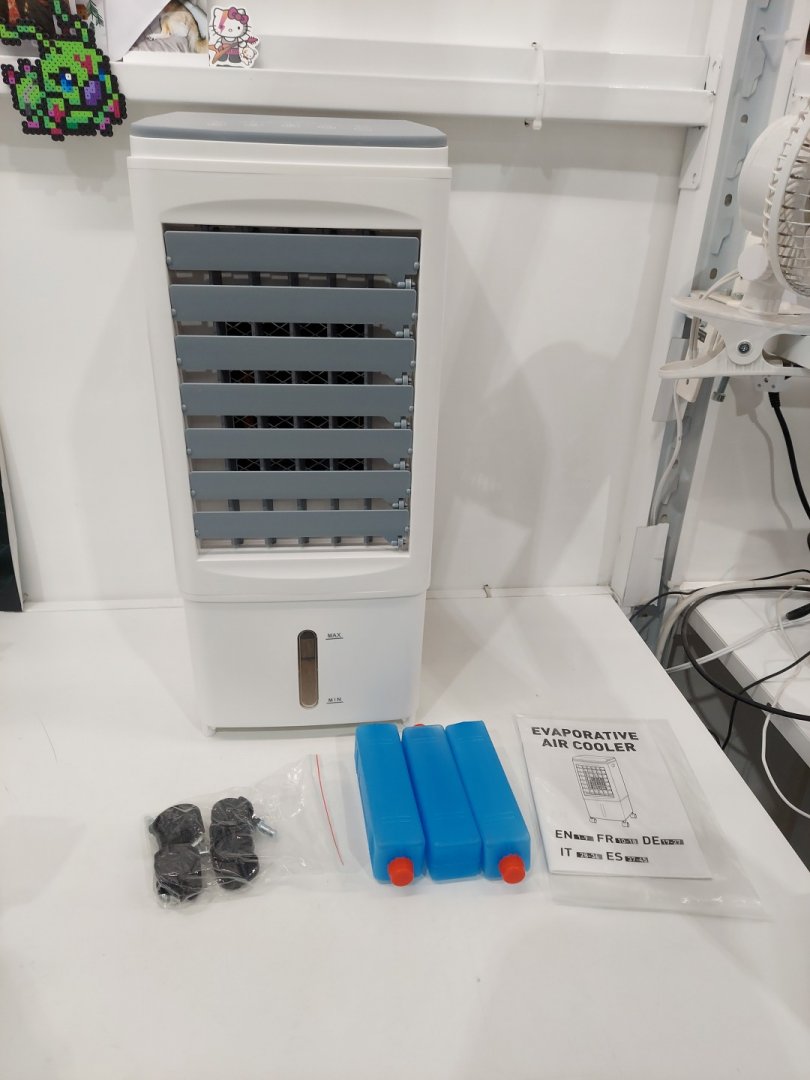 Portable 3-speed evaporative air cooler with remote control - 1.6gal capacity - 30" - white/grey (model: bw-102y)