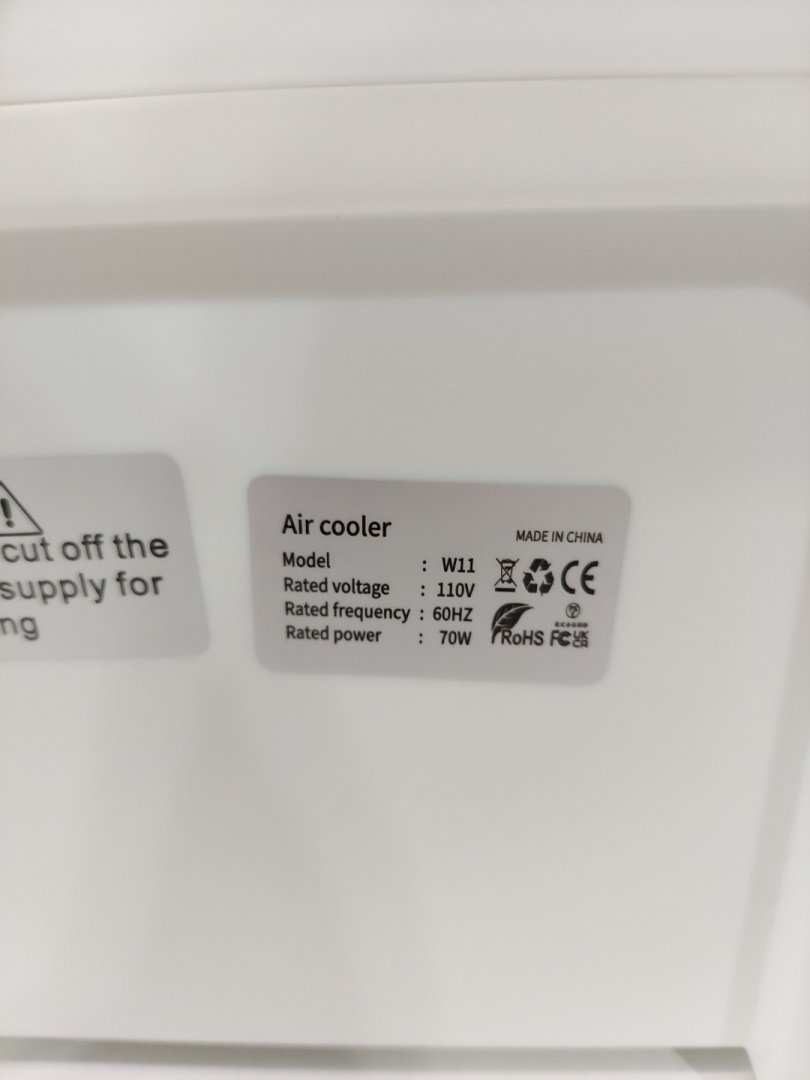 Portable 3-speed evaporative air cooler with remote control - 110V - 70W - WHITE/BLACK - (MODEL:W11)