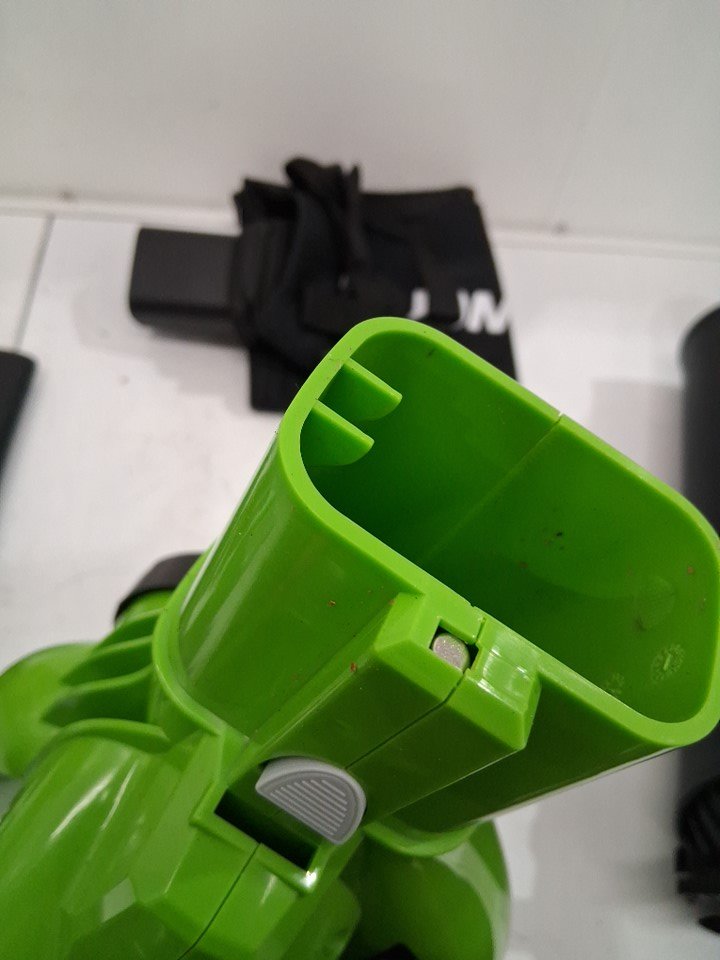 Product has light dust and debris throughout, and blower attachment has small nick from shipping (see photos)