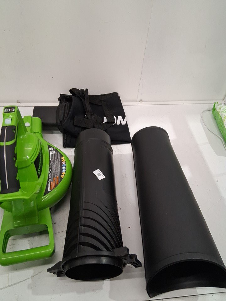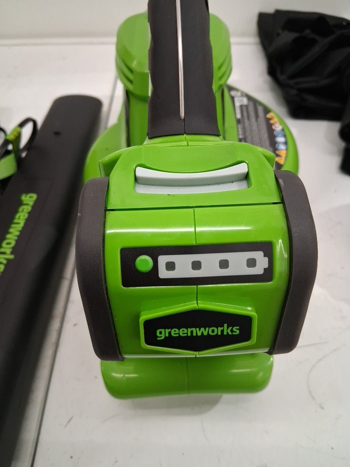 GREENWORKS 2-SPEED LEAF BLOWER/VACUUM - 375CFM/230MPH - 12A - GREEN/BLACK (MODEL: BVF443)