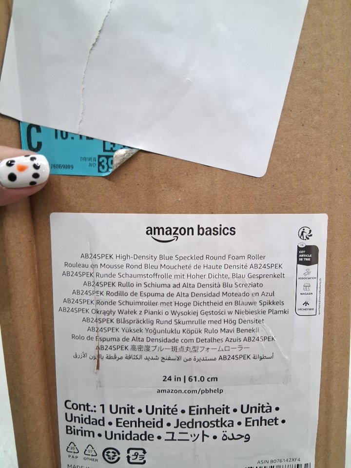 AMAZONBASICS HIGH-DENSITY ROUND FOAM ROLLER FOR YOGA and EXERCISE - 24" - BLACK/BLUE SPECKLED (MODEL: ab24spek)