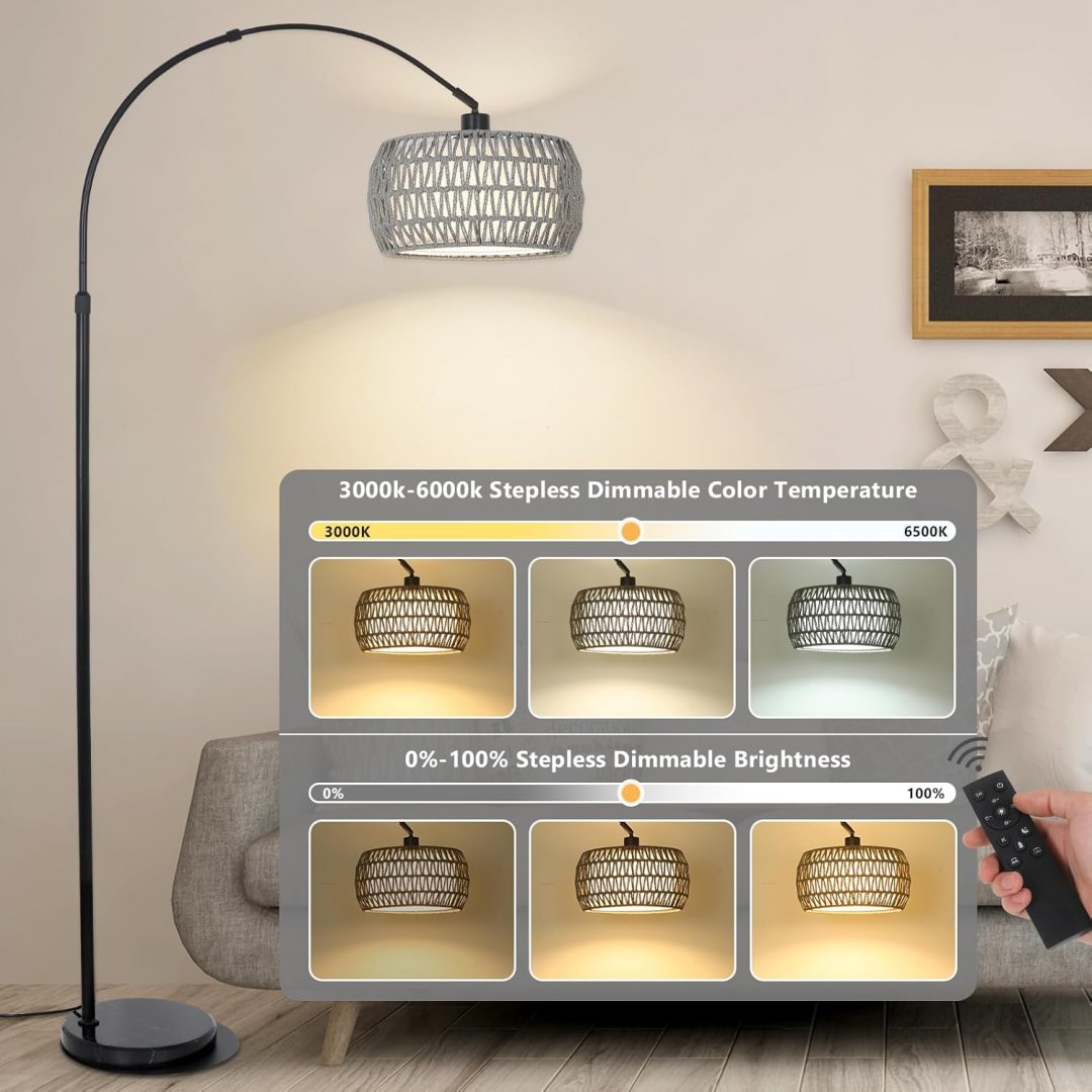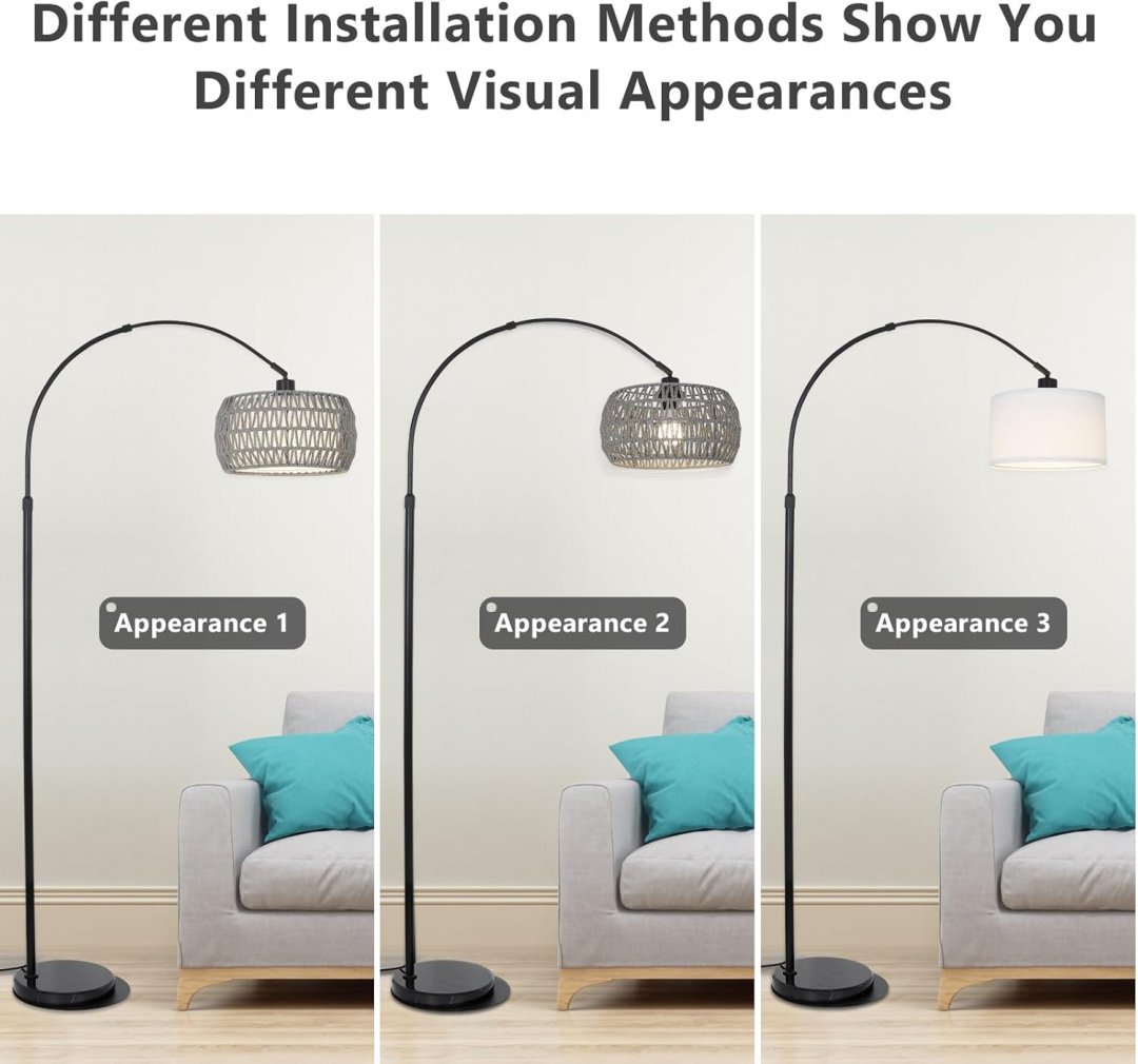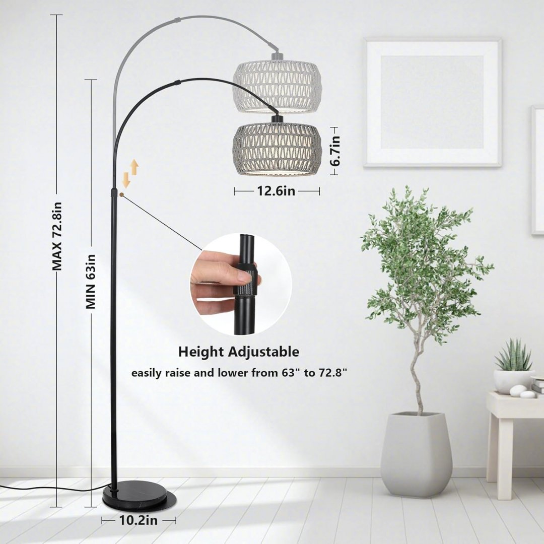 eyassi adjustable arc standing floor lamp with boho lampshade - 63"- 73" - black with gray shade - (model: 230407D1)