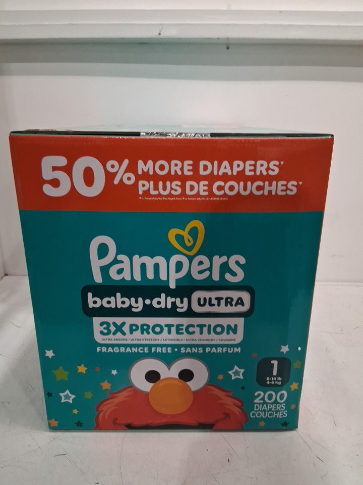 200PK Pampers baby dry ultra, Fragrance Free - Size 1 - Elmo