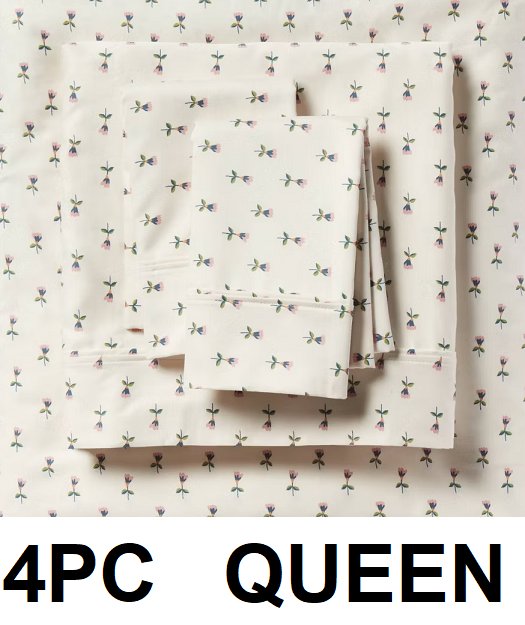 4PC Printed Performance 400 Thread Count Sheet Set - QUEEN - FLORAL CREAM
