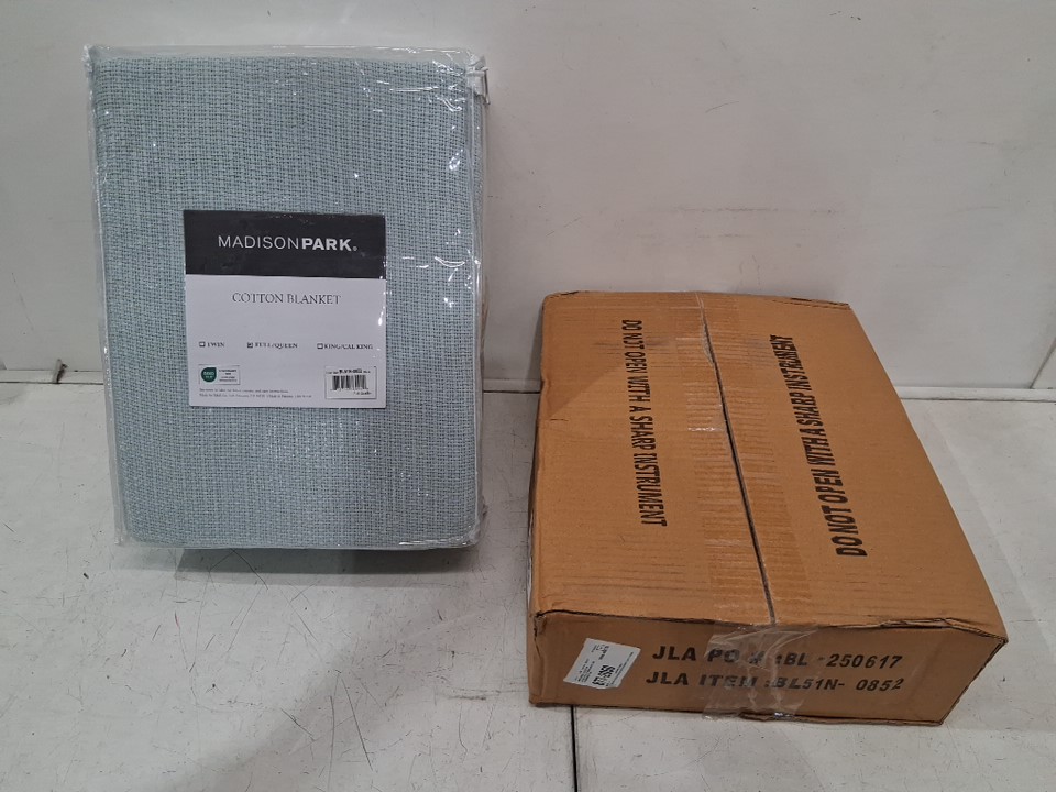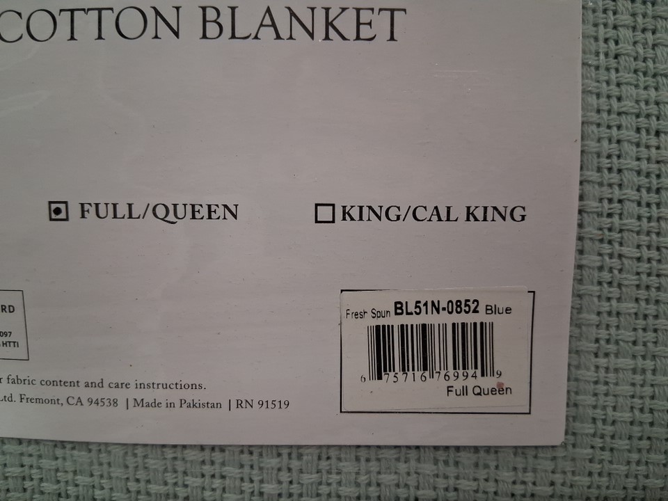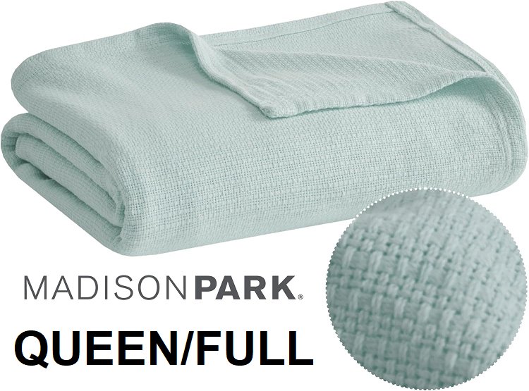 Madison Park freshspun basketweave Cotton Blanket - Full/Queen - 90" x 90" - blue (model: BL51N-0852)
