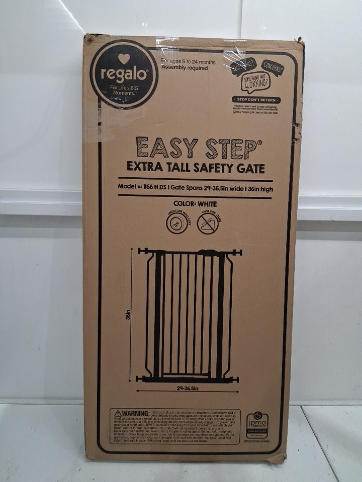 REGALO EASY STEP WALK-THRU METAL SAFETY GATE - 36" x 29" to 36.5" - WHITE (MODEL: 1166HDS)