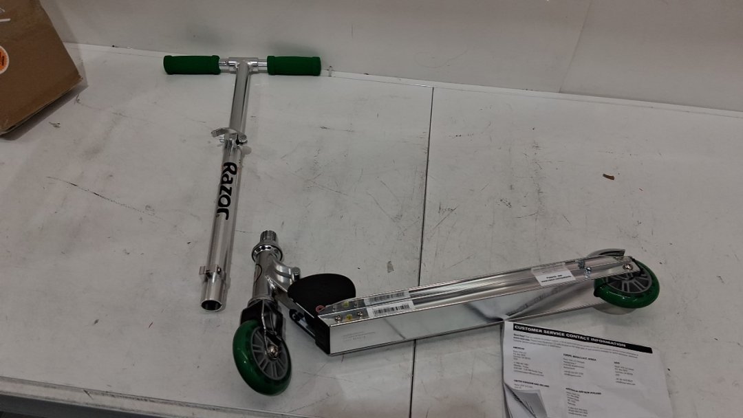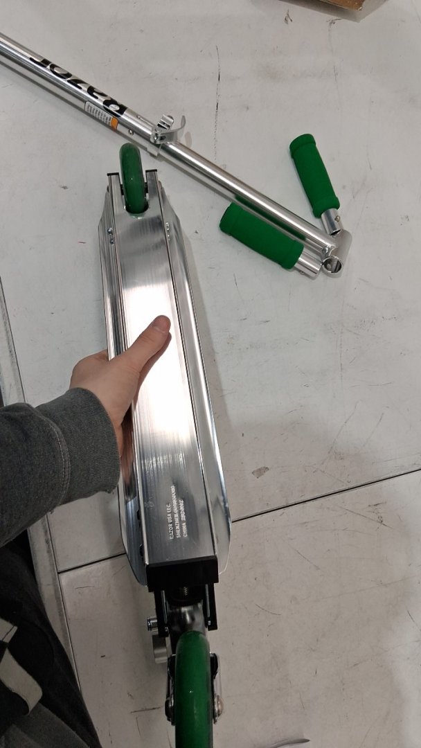 scooter is missing bracket to tighten handle bars to base, please see photo. also there is dirt on the grip tape and wheels, indicating previous use