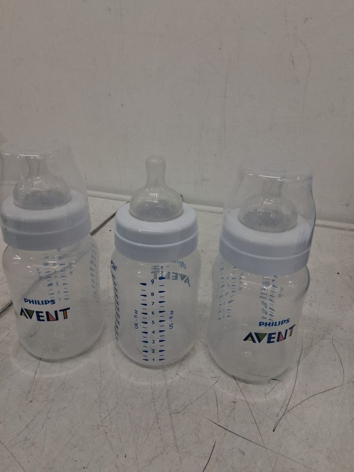 The item has watermarks, and one bottle is missing its cap. See photos for details.