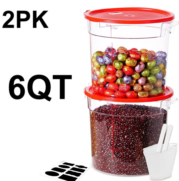 2PK SVKLHY Round Food Storage Containers with Lids, food safe - 6QT - clear/red
