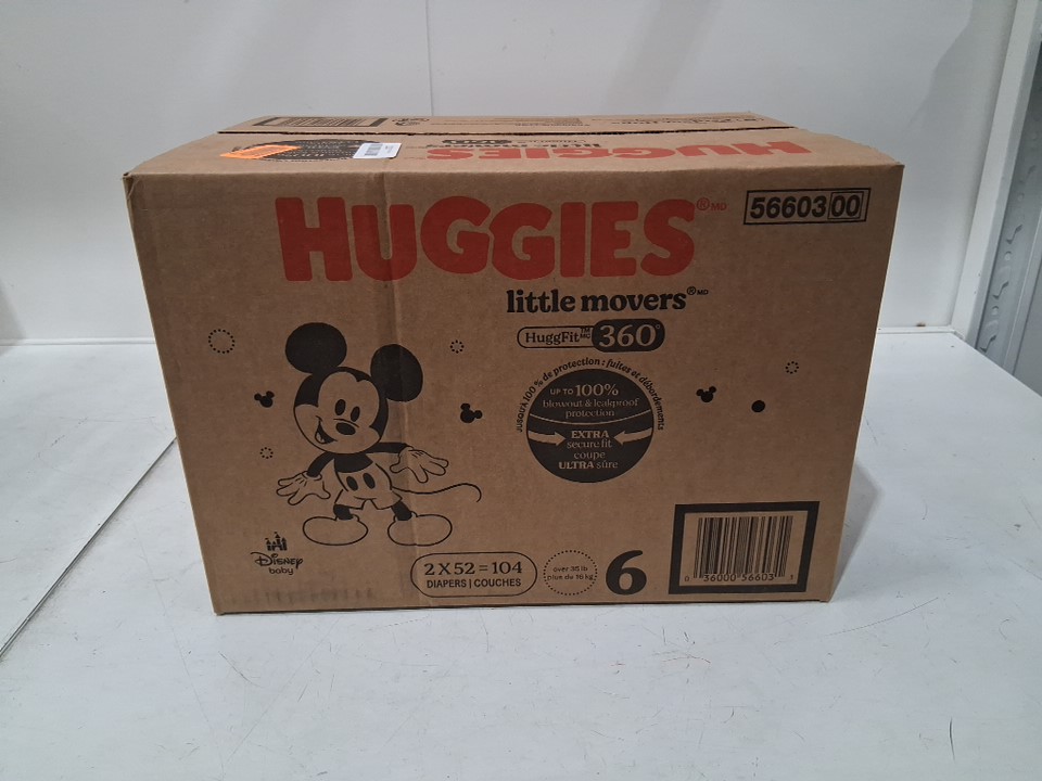 104PK HUGGIES LITTLE MOVERS disney baby DIAPERS - SIZE 6 (over 35lb)