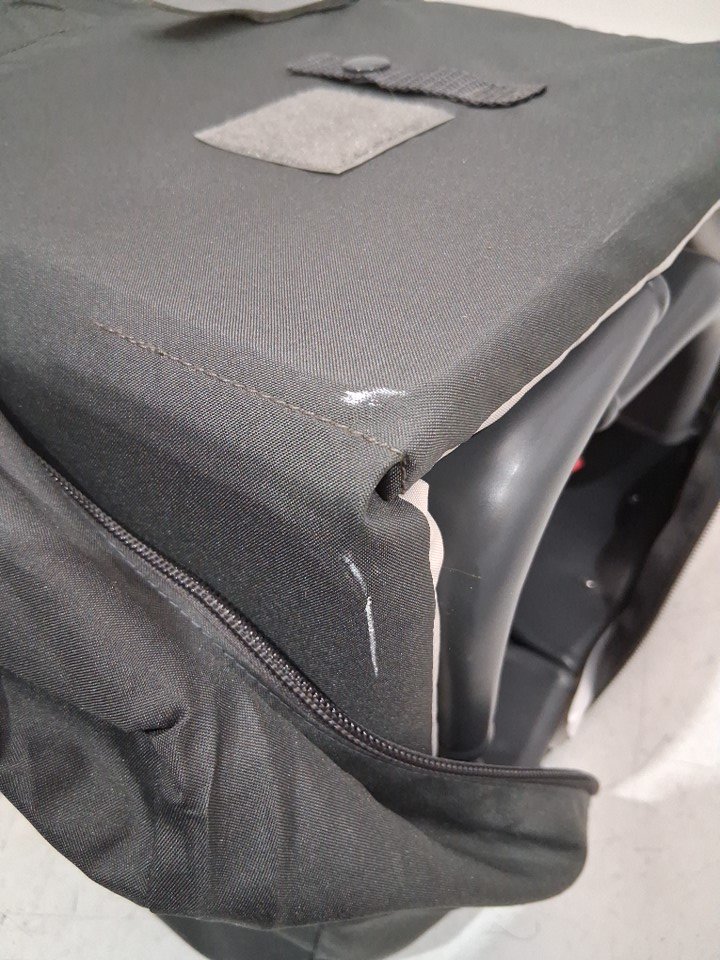 please note the item has some dirt/markings on the wheels and other parts from light use. see photos.