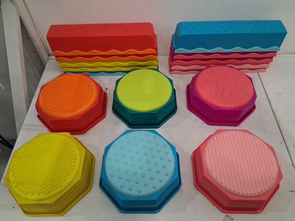16PC B.TOYS Modular Interlocking Balancing Beams & sensory stepping stones - rainbow (model: ‎BX2608C1Z)