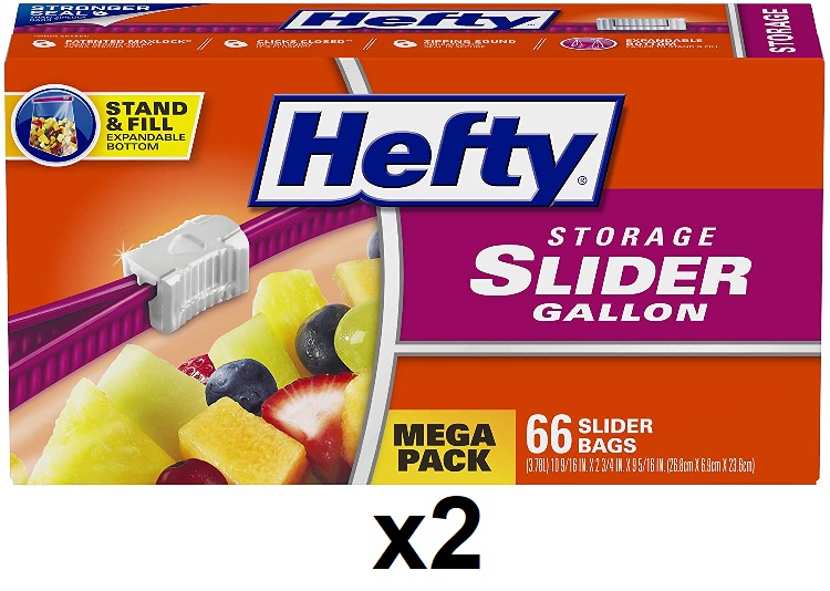 2(32PK) HEFTY STORAGE SLIDER freezer BAGS - 1.9L - clear