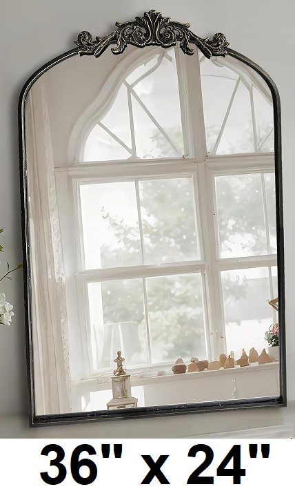 Antique Arched Farmhouse Wall Mirror - 36" x 24" - black