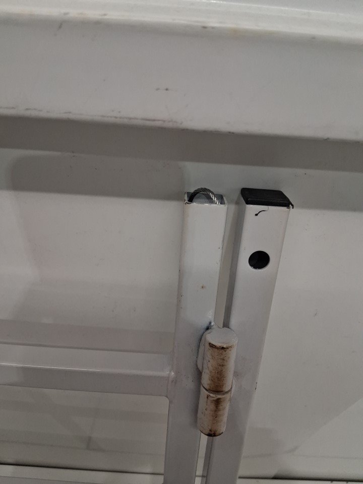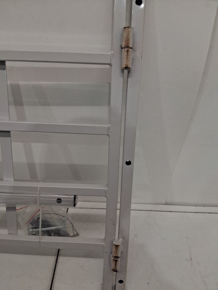 hinges have brown/rust discoloration and one rod top is missing an end cap