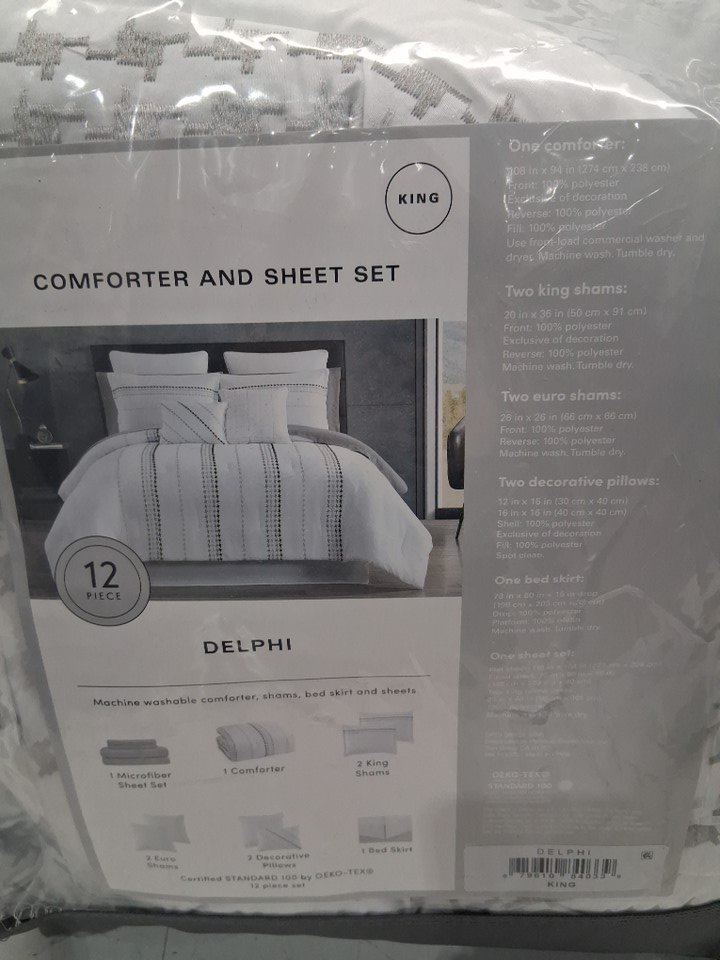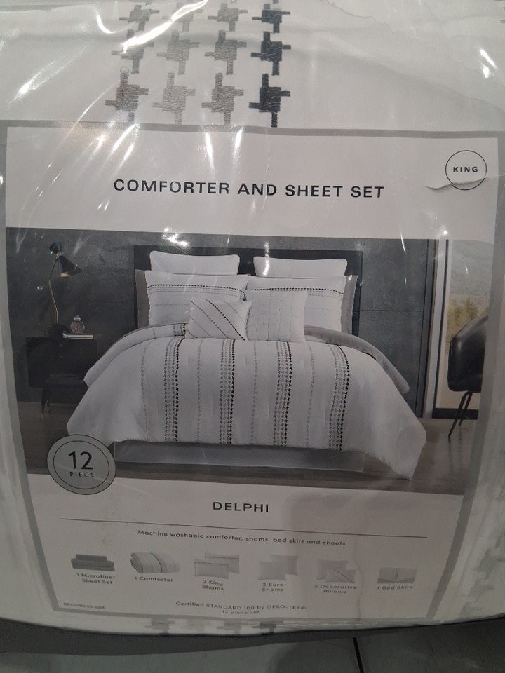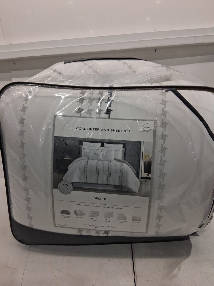 12PC Delphi Embroidered Stripe Comforter & Sheets Bedding Set- KING