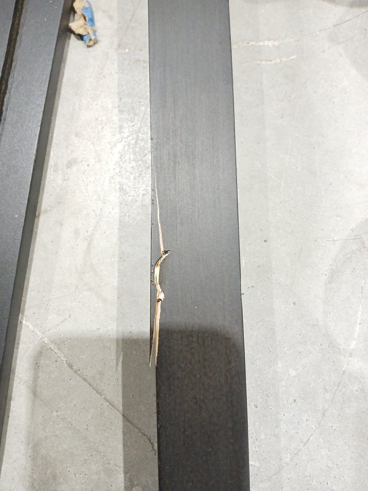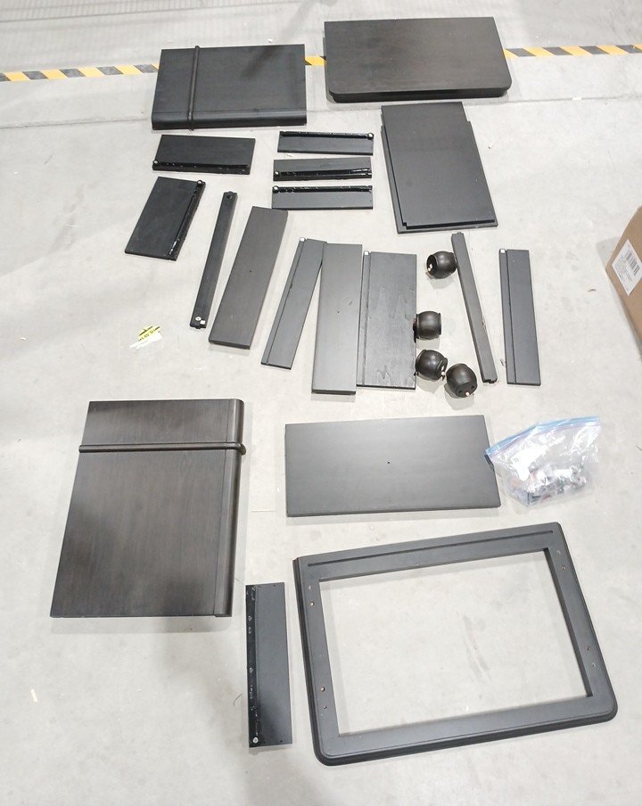 This item has previous assembly marks, some parts are already assembled, has scratches, and one piece has a crack along its side