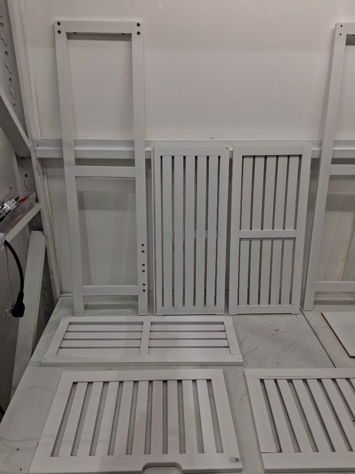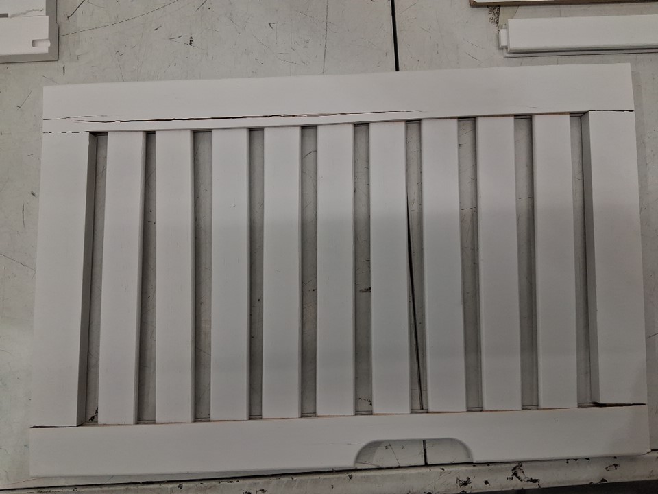 One cabinet door arrived at inspection with several distresses in wood. (See photos)