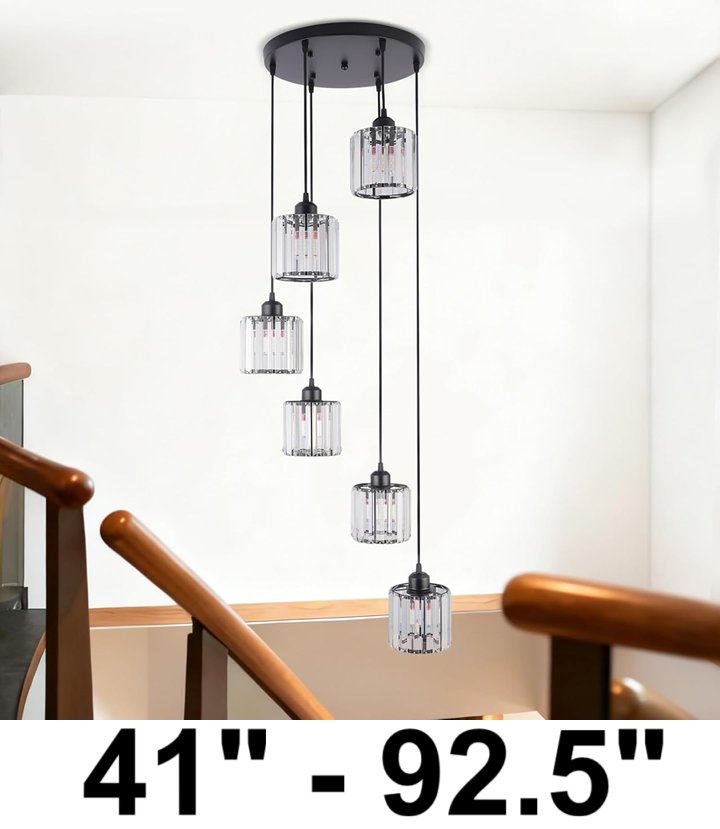 Cainjiazh Retro Crystal Chandelier Foyer 6-Light - Black