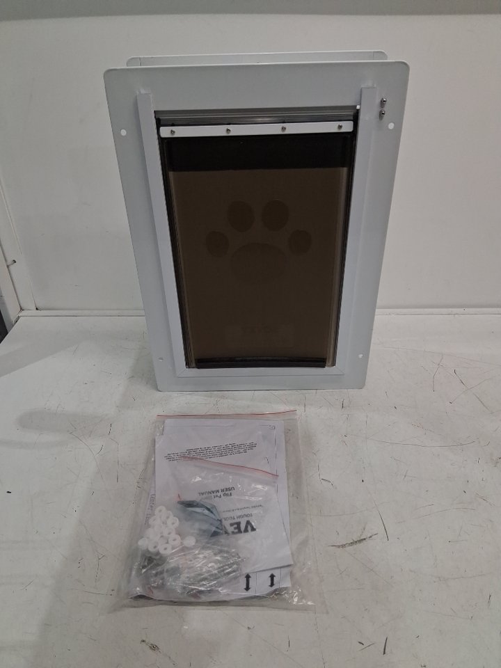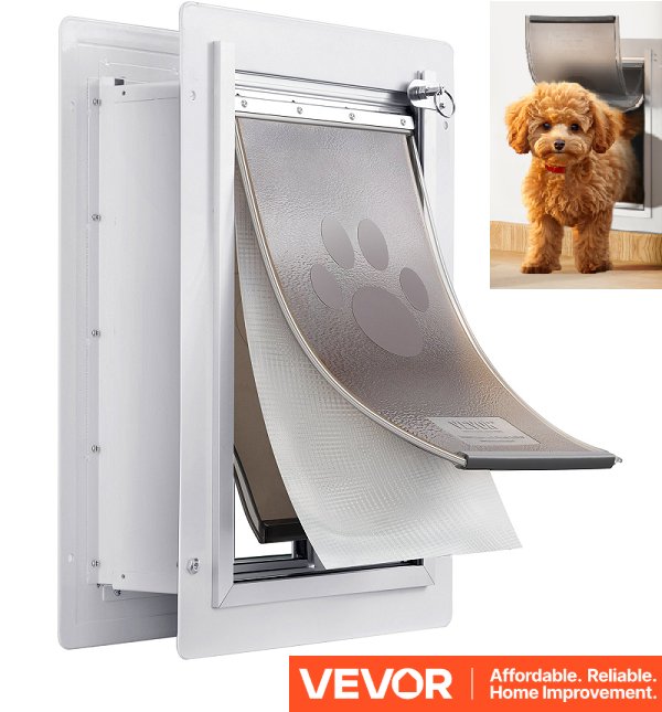 VEVOR Weatherproof Doggy Door Metal Frame With Lock Flap System - 17" x 12" - White (model: cwm02-m)
