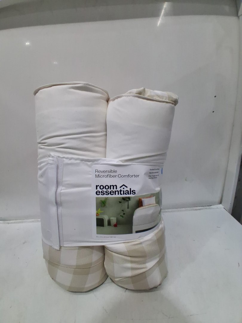 ROOM ESSENTIALS REVERSIBLE MICROFIBER COMFORTER - TWIN/TWIN XL - BEIGE/OFF-WHITE