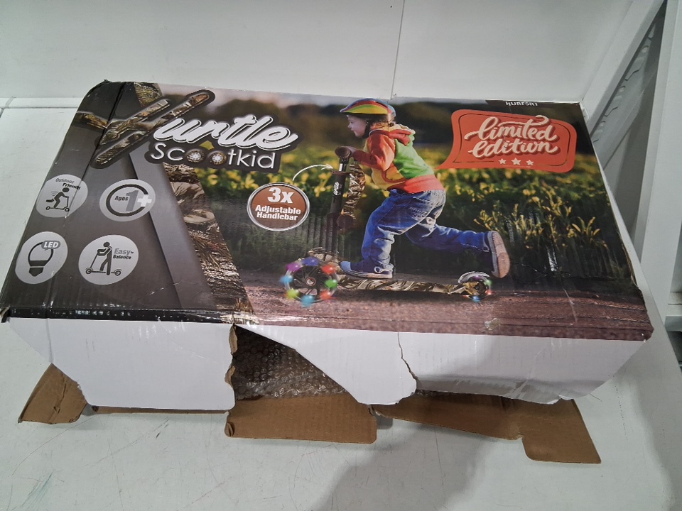 HURTLE SCOOTKID 3-WHEELED KICK SCOOTER WITH FLIP OUT SEAT, ADJUSTABLE HEIGHT - CAMO (MODEL: HURFSRT)