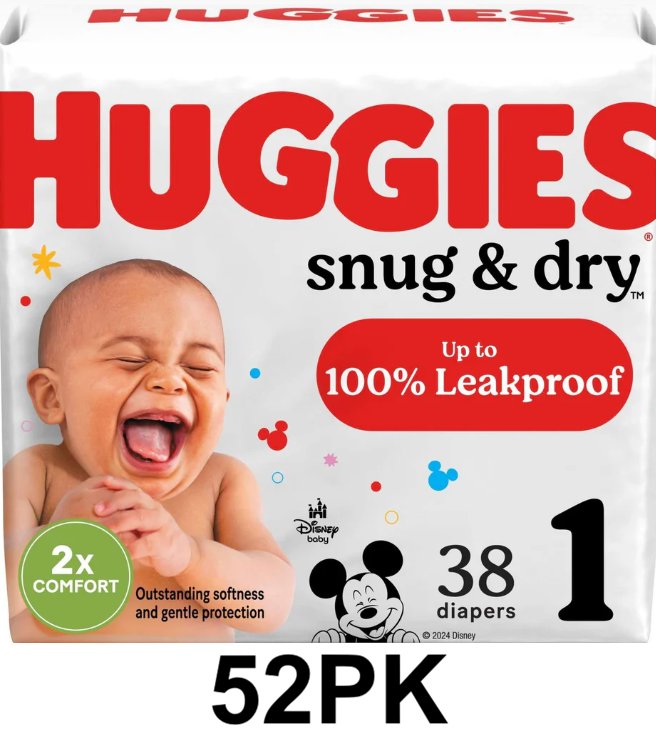 52PK HUGGIES Snug & Dry Baby Diapers - size 1 - 8lb-14lb - Disney Mickey Mouse Design
