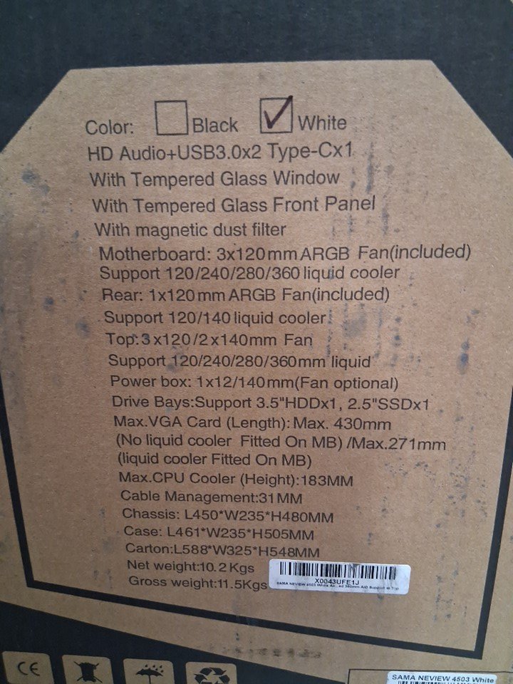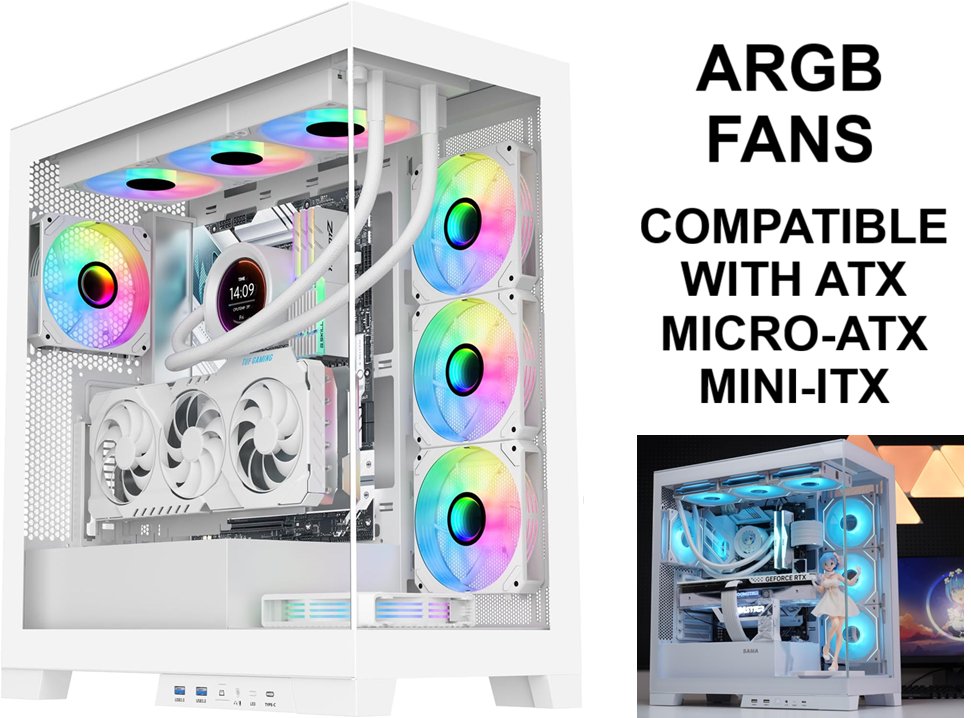 SAMA NEVIEW 4503 MID TOWER PC CASE WITH DUAL TEMPERED GLASS PANELS 4X120MM ARGB FANS PRE-INSTALLED - COMPATIBLE WITH ATX, MICRO-ATX, MINI ITX MOTHERBOARD - WHITE