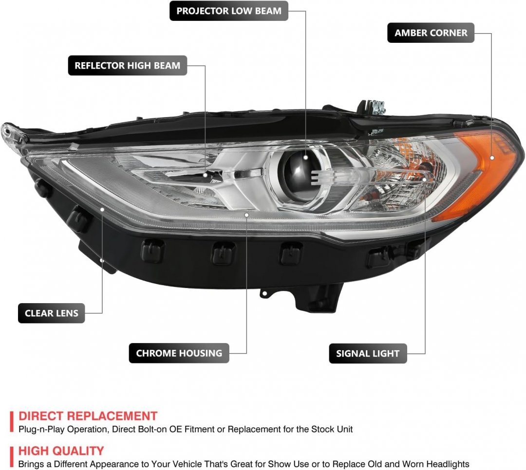 DNA MOTORING OE Style left headlight - Compatible with Ford Fusion 2017-2020 (model: OEM-HL-0158-L)