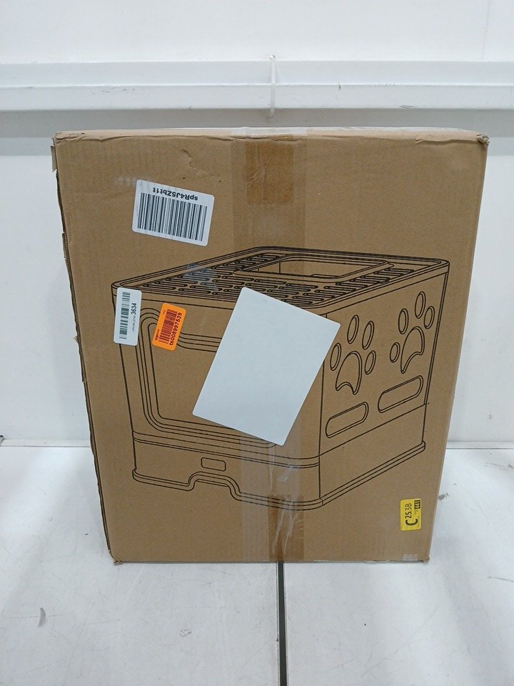 VEALIND LARGE FOLDABLE CAT LITTER BOX WITH SCOOP, LID & ANTI-SPLASH PROTECTION - 20" x 16" x 15" - GREY (MODEL: MSP-09)