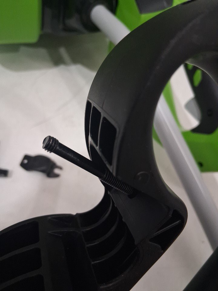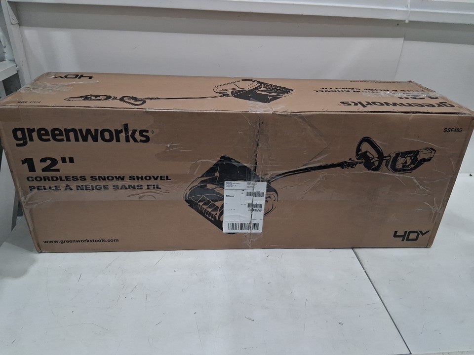 the handle to the snow shovel appears to be broke, there is a screw broke into the attachment piece. light scuffs and marks on the entirety of the shovel.