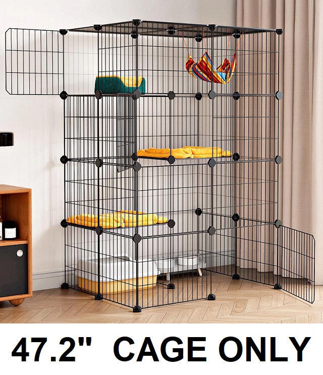 Oneluck 4-Tier Cat Cage with Detachable Walls - 47.2" - Black