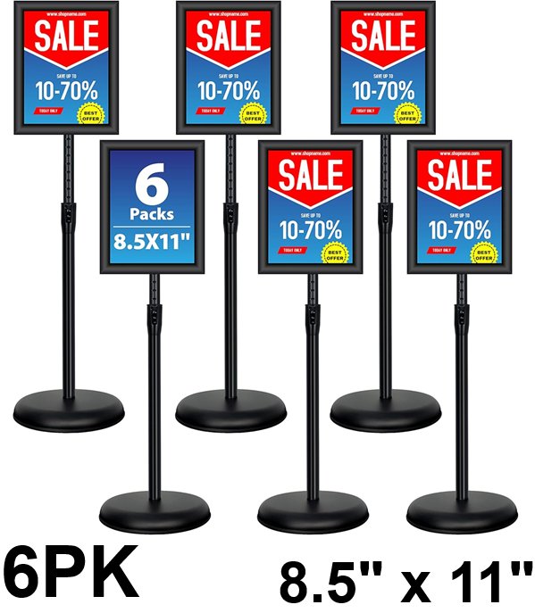 6PK Vaiigo Heavy duty Adjustable Pedestal Poster Sign Stand with Aluminum Snap Open Frame - 8.5" x 11" - 32"-51" Adjustable length - Black