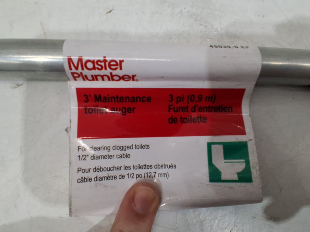 MASTER PLUMBER wire toilet auger drain cleaner clog removing snake - 1/2" x 3ft - black/silver (model: ‎45030-6 EF)