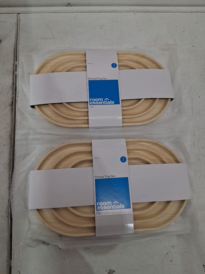 2 3pc Room Essentials PRINTED Melamine Tray SET - BEIGE/BROWN