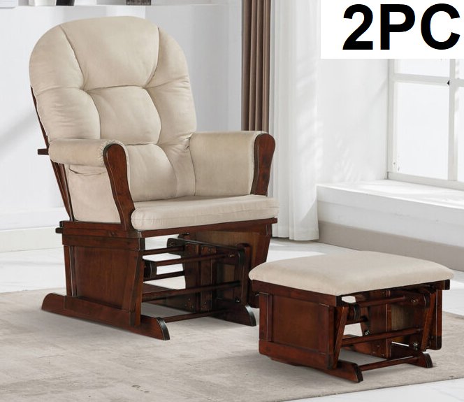 2pc lennox furniture Florence Glider Chair and Ottoman Combo - espresso/Beige (model: 7585CB.02.0182)