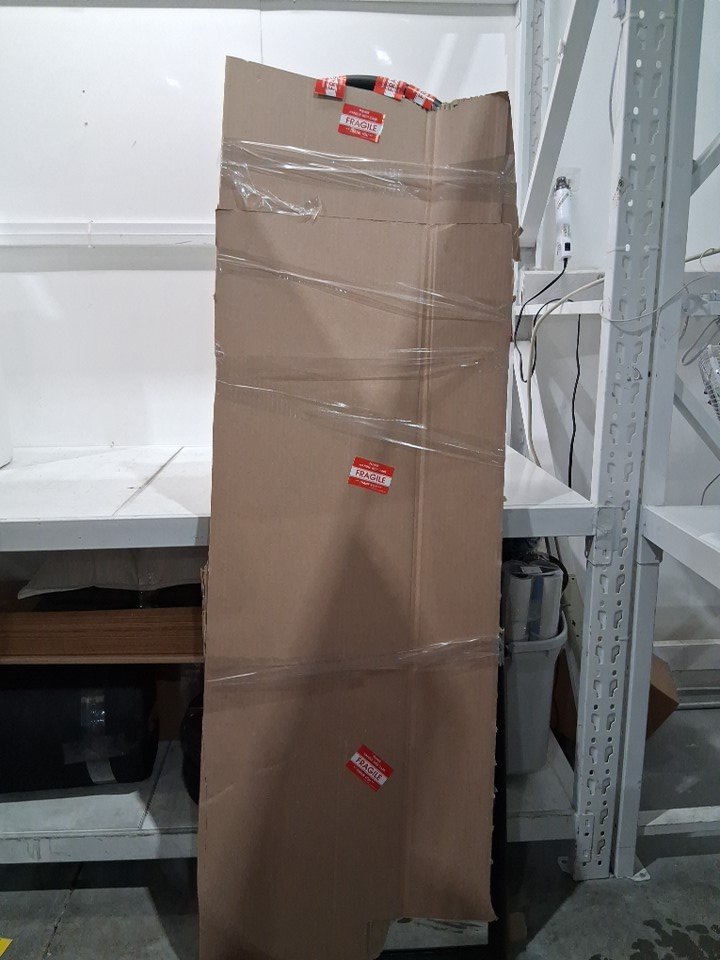 the bar across the back has broken, item has some light scratch and scuff marks due to shipping without any packaging