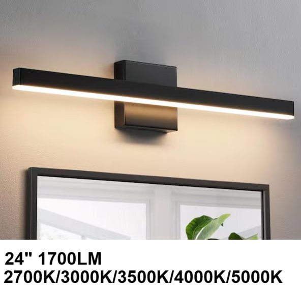 kaisite modern led dimmable vanity light bar - 24" - 1700lm - 2700k/3000k/3500k/4000k/5000k - black - (model: 8203WL-24BK-US)