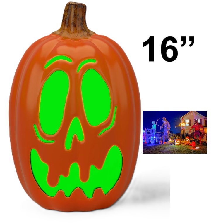 Hyde And Eek Lit Pumpkin Jack-o'-lantern - 16" - Orange/Green