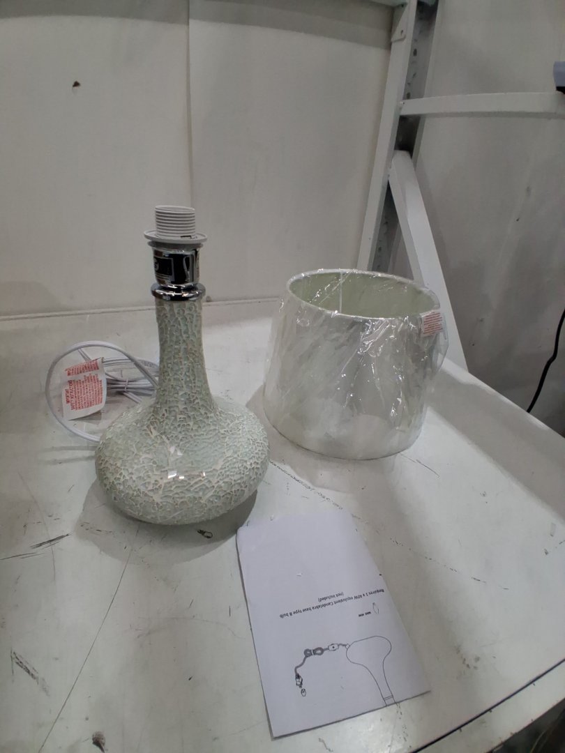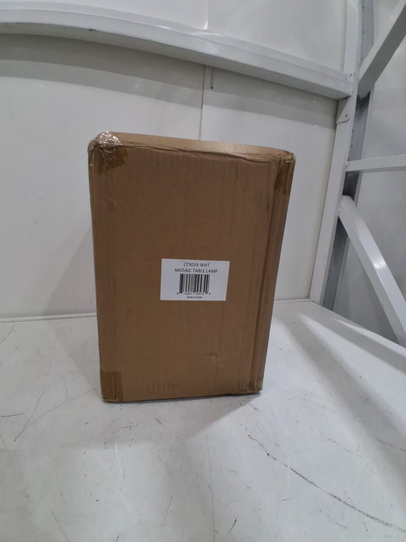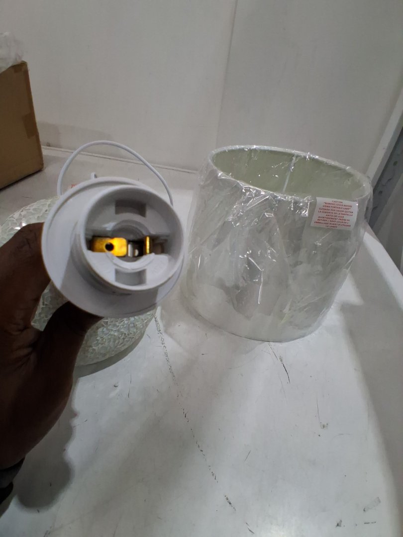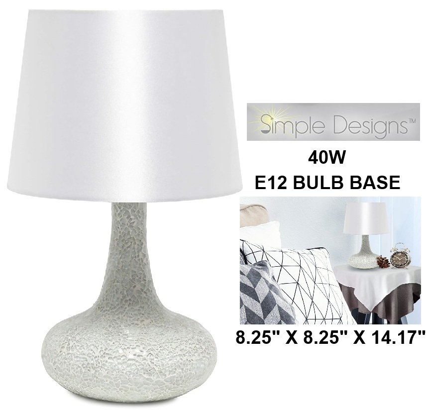 Simple Designs Mosaic Tiled Glass Genie Table Lamp with Fabric Shade & In-Line Rotary Switch -8.25" X 8.25" X 14.17" -E12 BULB BASE- WHITE (MODEL:LT3039-WHT)