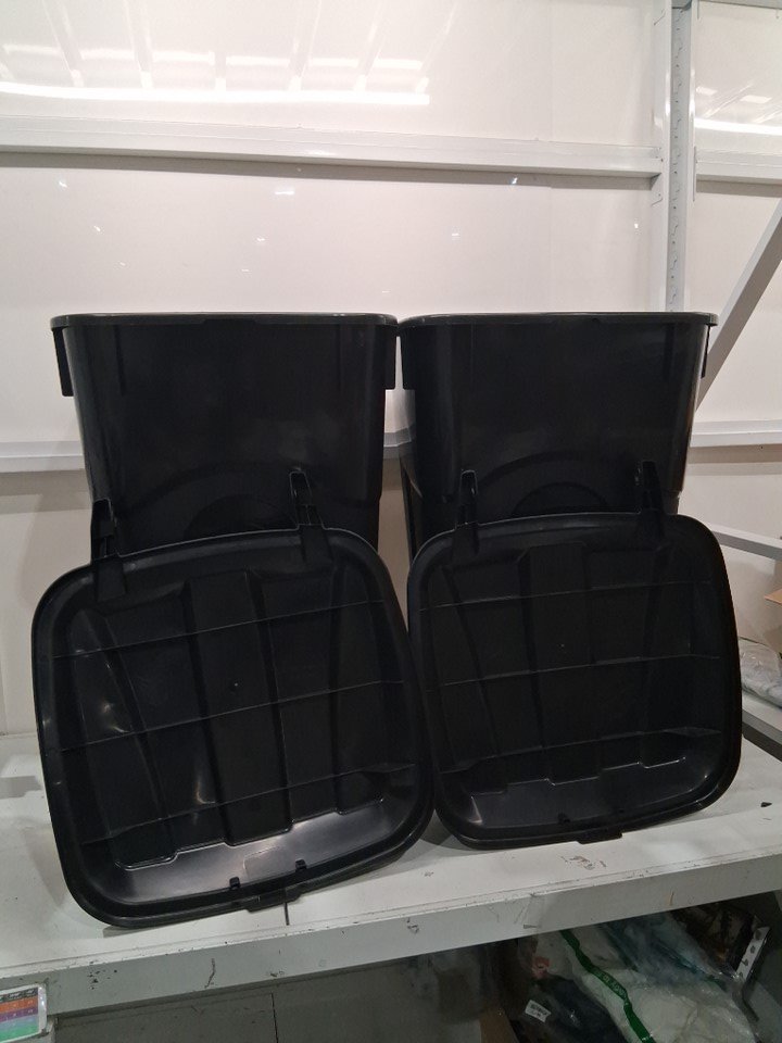 2 united solutions wheeled trash can with handle and flip lid - 32gal each - black - (model: TI0088)