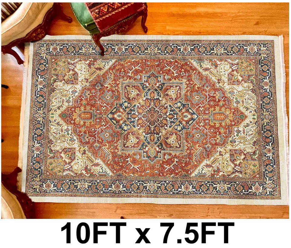 Distressed Persian Style Rug, Boho Living Room Carpet- 10FT x 7.5FT - terracotta/orange/navy