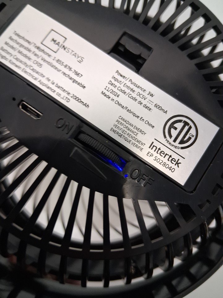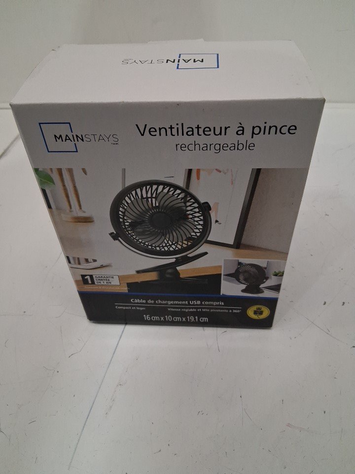 Mainstays Rechargeable portable Clip Fan - 7.5'' - Black (model- cf05)
